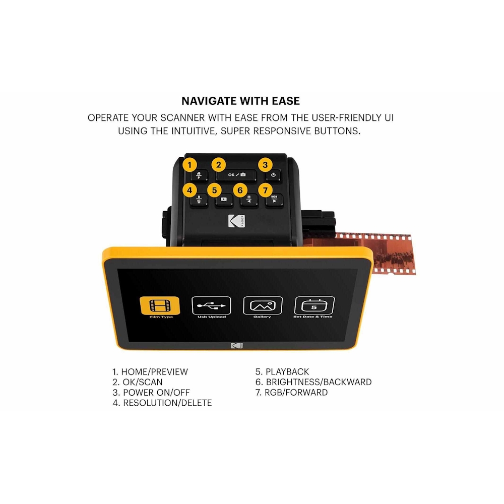 ΑΠΟΘΗΚΕΥΣΤΕ ΠΑΛΙΕΣ ΦΩΤΟΓΡΑΦΙΚΕΣ ΑΝΑΜΝΗΣΕΙΣ: Ψηφιακός σαρωτής φιλμ 13/22MP σας επιτρέπει να βλέπετε, να επεξεργάζεστε και να μετατρέπετε τα έγχρωμα και ασπρόμαυρα αρνητικά [135, 110, 126mm] και διαφάνειες 50mm [135, 110, 126mm] σε ψηφιακά αρχεία και να τα αποθηκεύετε απευθείας σε κάρτα SD (ΔΕΝ ΠΕΡΙΛΑΜΒΑΝΕΤΑΙ) - ΟΘΟΝΗ LCD 7" ΜΕ ΛΕΙΤΟΥΡΓΙΑ ΓΚΑΛΕΡΙ: Διαθέτει μεγάλη, κρυστάλλινη οθόνη με ευρεία γωνία θέασης για άμεση προεπισκόπηση και επεξεργασία φωτογραφιών | Ιδανικό για κοινή χρήση με φίλους και οικογένεια ή για χρήση ως κομψή ψηφιακή κορνίζα στο σπίτι ή το γραφείο ΕΥΚΟΛΗ ΦΟΡΤΩΣΗ ΦΙΛΜ: Η τεχνολογία δίσκου γρήγορης τροφοδοσίας επιτρέπει τη συνεχή φόρτωση, κάνοντας τη σάρωση γρήγορη και απλή! Περιλαμβάνει βάση διαφανειών 50mm, προσαρμογείς για φιλμ 135, 110 και 126, βούρτσα καθαρισμού και καλώδια USB (το καλώδιο HDMI δεν περιλαμβάνεται) ΕΠΕΞΕΡΓΑΣΙΑ ΜΕ ΕΝΑ ΜΟΝΟ ΑΓΓΙΓΜΑ: Προηγμένο Λογισμικό που βελτιώνει, αλλάζει μέγεθος και μετατρέπει φωτογραφίες μέσω του εύχρηστου κουμπιού «Σάρωση»—Χωρίς πολύπλοκες οθόνες ή ρυθμίσεις! | Οι εύκολες επιλογές σάς επιτρέπουν να επιλέξετε τύπο φιλμ, να προσαρμόσετε χρώμα/φωτεινότητα και να ορίσετε ημερομηνία/ώρα